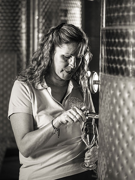 Back at her cellar in town, Vesselle explained that she does not make Bouzy Rouge every year, and when she does, it only makes up five percent of her production. She focuses her red wine on several parcels of old vines, including Le Clos, where some of the vines date to 1902, and Les Brousses, where the average age is reaching 65 years, the vines planted by her grandfather. Her father chose to vinify the wine without oak barrels, and she decided to continue with that style. “I’m a little afraid if I put it in wood, I would lose the cherry-stone flavor, which is very particular to Bouzy,” she said, offering me a taste from the vat of the most recent vintage. She captures that delicate character by destemming her grapes and macerating the bunches for four to five days in cold tanks. She warms them up for fermentation, then, after malolactic conversion, the wine rests on its fine lees in tanks for four or five years. Even without the support of oak tannins, Vesselle’s old-vine fruit has the stamina to age, as witnessed by the freshness of her 2008.